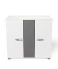 Für maximale Sicherheit lassen sich die Türen mit digitalem Zahlencode oder Schlüssel abschließen. Sie öffnen sich in einem 270° Winkel und werden magnetisch gehalten, sodass der Zugriff einfach und komfortabel bleibt. Die Kabel sind sicher im separaten Fach untergebracht.