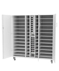 Hochwertiger Laptopwagen zur sicheren Verstauung von bis zu 24 Laptops. Fahrbare Tablarauszüge machen das Verstauen der Geräte einfach und problemlos. Ladeleisten mit Überspannschutz und Sicherungen gewährleisten den Ladeprozess auch im verschlossenen Zustand.