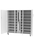 Hochwertiger Laptopwagen zur sicheren Verstauung von bis zu 16 Laptops. Fahrbare Tablarauszüge machen das Verstauen der Geräte einfach und problemlos. Ladeleisten mit Überspannschutz und Sicherungen gewährleisten den Ladeprozess auch im verschlossenen Zustand.