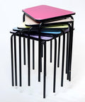 - 4 Gummipuffer am Gestell zur Vermeidung von Kratzern beim Stapeln der Tische