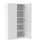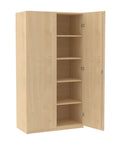 Hochwertiger Aktenschrank aus deutscher Produktion mit Türen und 4 Einlegeböden. Der Korpus besteht aus einer melaminharzbeschichteten E-1 Feinspanplatte mit ABS-Kante. Eine Nut & federverleimte Sichtrückwand sorgt für extra hohe Stabilität.